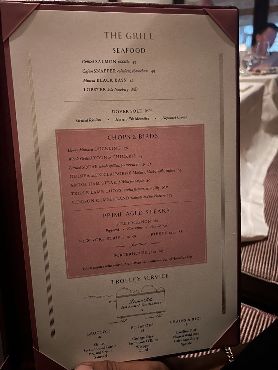The menu showcases a rich selection, from indulgent soups like Corn Chowder and Blue Crab Gumbo to vibrant salads such as the Avocado Crab Louis and Quartered Tomato Salad. For heartier fare, don't miss the New York Strip or the esteemed Porterhouse steaks, perfectly aged and grilled to perfection. The Filet and unique pasta dishes really stand out, enhancing the culinary experience.